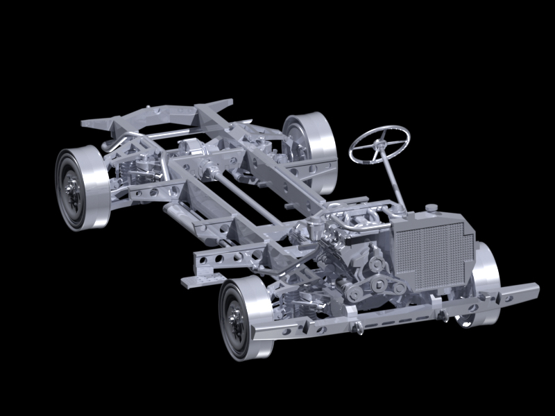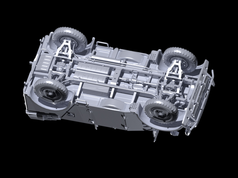 Детализированная подвеска, проработанные мосты, карданы, рычаги, стабилизаторы, пружины, проработанная несущая рама выполнена единой деталью, выхлопная система выполнена отдельными деталями.