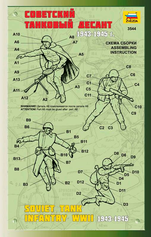 Набор деталей для сборки фигурок 4 солдатиков.