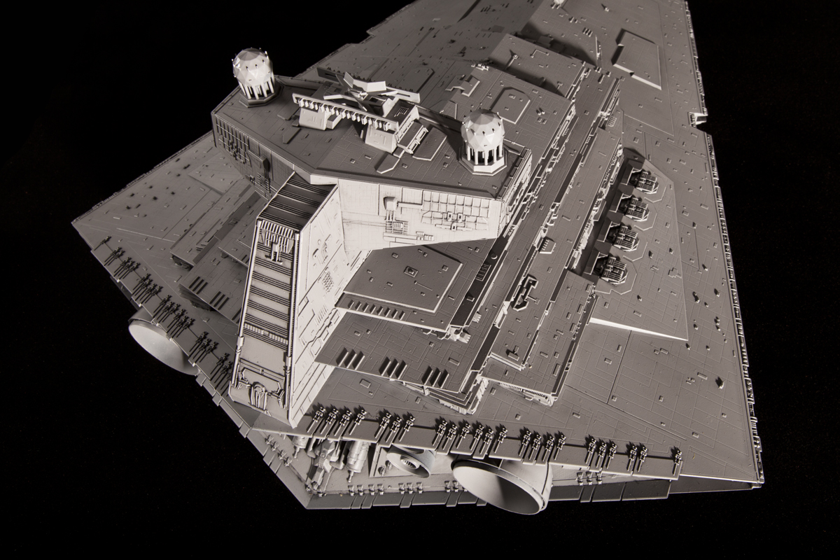 В ангаре Звёздного Разрушителя находятся эскадрильи имперских истребителей, перехватчиков и бомбардировщиков, а также крупные десантные силы, включающие в себя: наземные шагоходы, пехоту и вспомогательные десантные корабли. Масштаб 1/2700